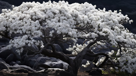 Great close-up of a white popinac, Jumbay on the branch