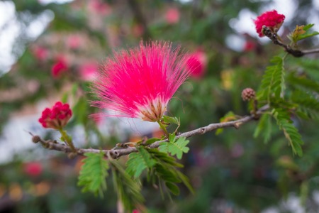 Red flower of Calliandra chinensis, also known as Pink bottlebrush or red powder tree.