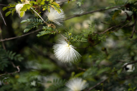 Acacia or albizia lenkoran flowers and green leaves