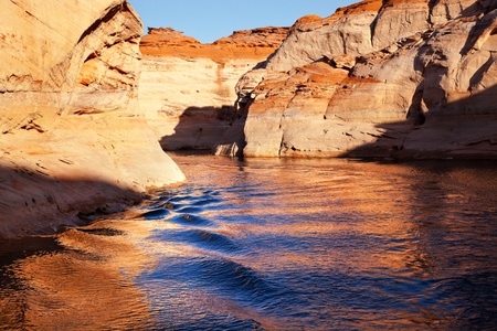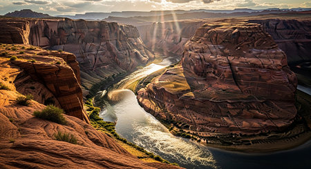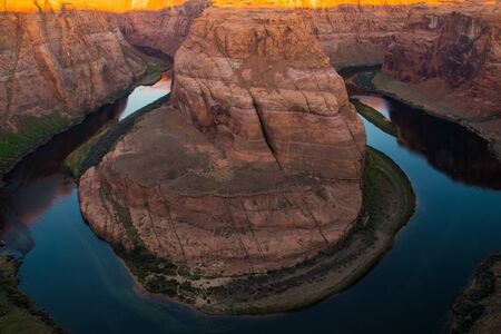 Golden hour view of Colorado river crossing a canyon in Page in Arizona USA