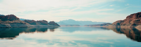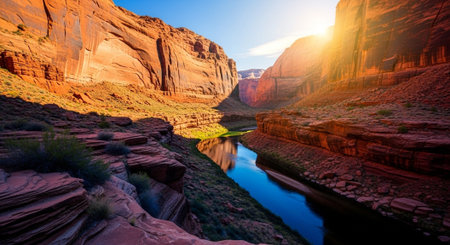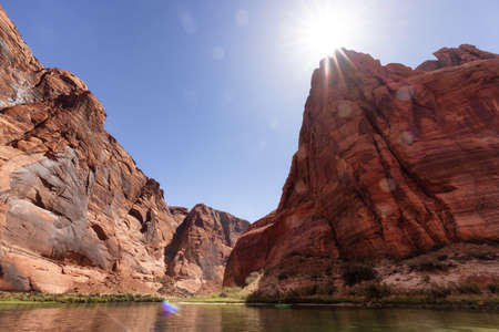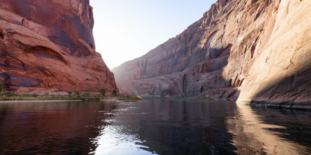 Colorado River in Glen Canyon, Arizona, United States of America. American Mountain Nature Landscape Background. Sunny Sunrise.