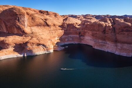 The largest reservoir in the United States of artificial origin is Lake Powell. Glen Canyon Dam across the Colorado River. Best journey in life. Concept of active, ecological and photo toursm