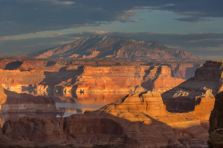 Elevated view sunrise at Lake Powell in the Arizona Desert