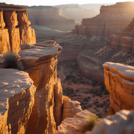 AI Generated. Desert Canyon System A deep narrow canyon system carved out by a