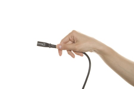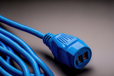 a blue power cord is new. blank backdrop with copy space in the front perspective