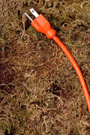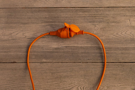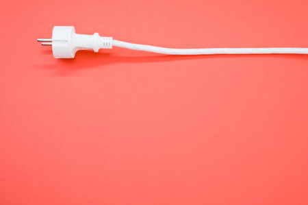 Electric plug for an outlet on an orange background. The concept of electricity and its importance in everyday life. Electric plug without socket. Power plug for the device