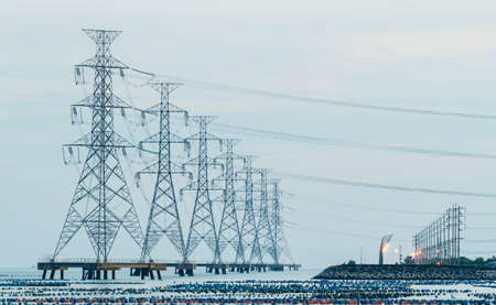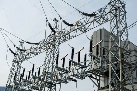 Industrial Power Lines and High Voltage Lines Electricity. high quality photo