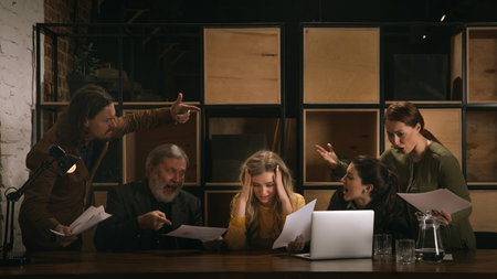 Close up of Upset Businesswoman being Scolded by Colleagues