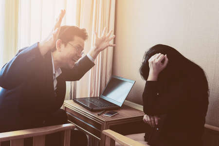 Businessman angrily discussing with his secretary