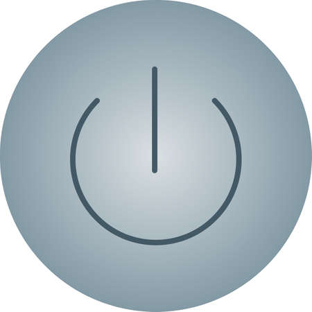 A minimalist power button icon is centered against a solid black backdrop. The design features a white outline with subtle shading, creating a three-dimensional effect. The composition emphasizes simplicity and clarity, suitable for digital interfaces. This image is applicable for graphic design, website elements, and user interface projects.