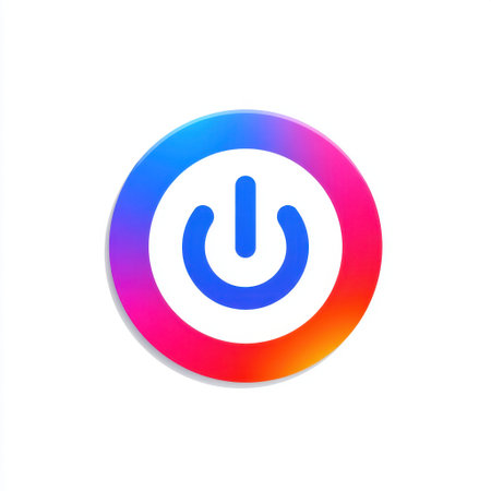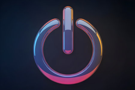 A vibrant and futuristic power button icon. rendered in a 3D style with glowing neon effects. Perfect for technology. gaming. or website designs.