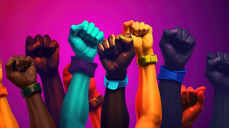 Raised fists in juneteenth and african liberation day celebration. Generative AI illustrator