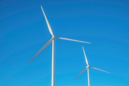 Wind turbines against a blue sky generating electricity - concept of sustainable development