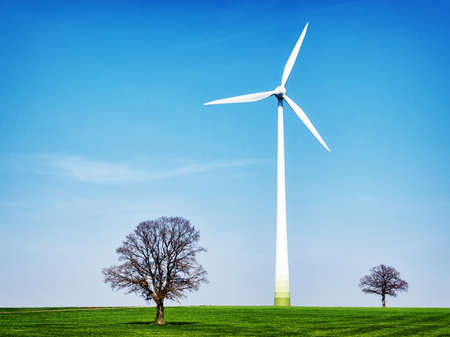 modern wind generator in front of blue sky