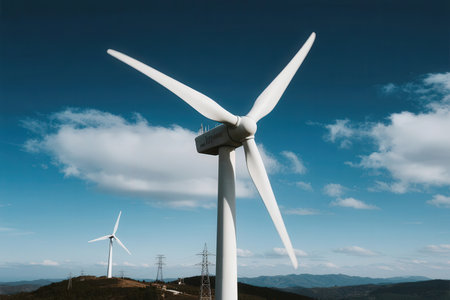 wind turbine on blue sky, clean energy concept