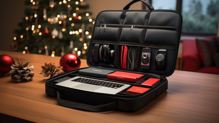 Closeup modern comfortable storage case electronic device and tools at save package for travel