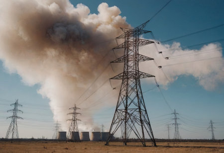 A nuclear power plant with smoke coming out of it. Generative AI.