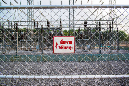 high voltage warning sign on high-voltage substation
