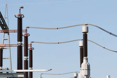 Many high voltage electrical insulators in power substation ,Energy supply to the community