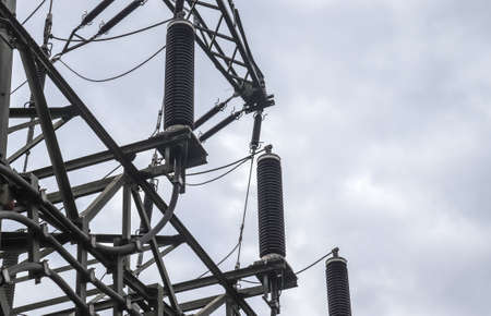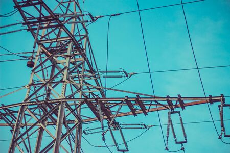 Pylon, high-voltage tower sky background, Electric power industry equipment