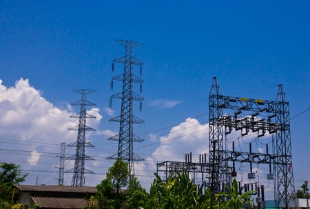 electrical towers, distribution centers, high voltage cables, high voltage areas.