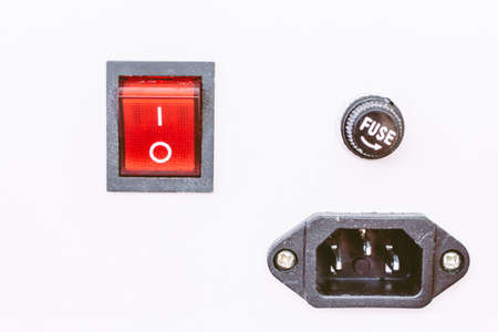 Electrical switch and plug on color background,