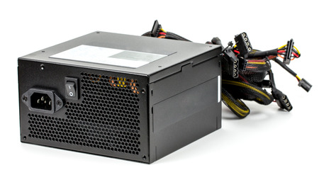 computer power supply on white background