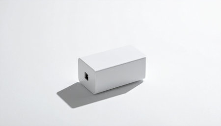 White box on a white background with shadow. Close-up.