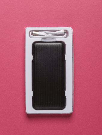 New power bank with packaging on a pink background