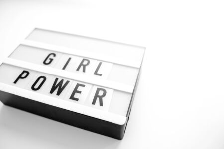 Girl power text on the lightbox. Top view. White background