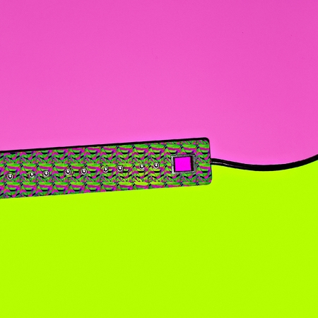 A visually striking composition featuring a variety of colorful electrical sockets set against a bright red background, showcasing design creativity and modern functionality.