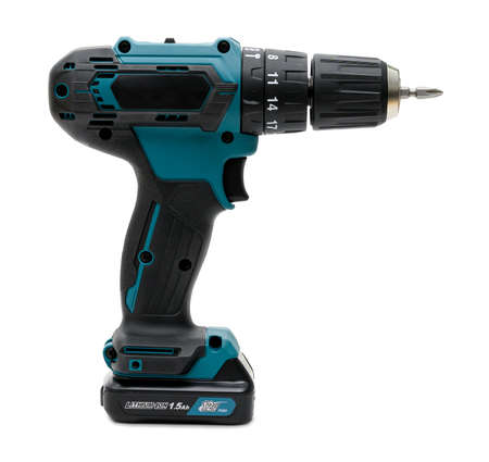 Cordless power drill on white background