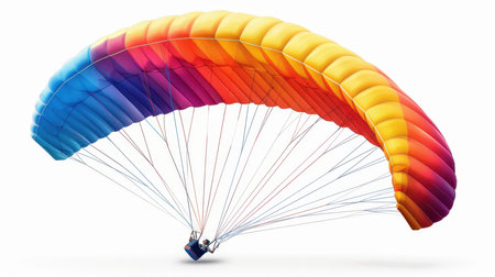 An athlete flying on a multicolored paraglider on a white background. Illustration.
