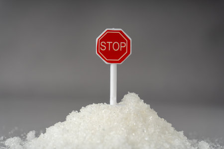 A symbolic photo showing a red stop sign embedded in white sugar on a spoon