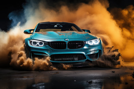 Experience the raw power and exhilarating energy of a high-performance sports car enveloped in thick, billowing smoke. This image captures a moment of intense automotive action, showcasing speed and dynamic movement.