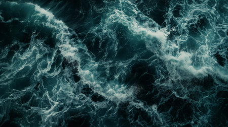 Dark ocean waves create intense textures, capturing natures energy and chaos.