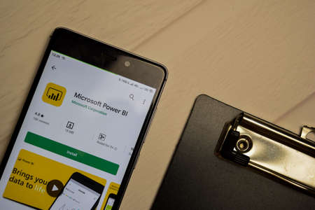BEKASI, WEST JAVA, INDONESIA. APRIL 1, 2020 : Microsoft Power BI dev application on Smartphone screen. Power BI is a freeware web browser developed by Microsoft Corporation