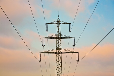 High voltage post in the evening