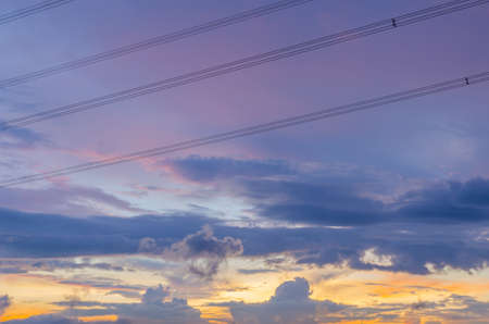 Copy space summer twilight sky and cloud with electric cable wire in city abstract background.