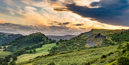 Sunset panorama of Castell Dinas Bran near Llangollen from Panorama Walk