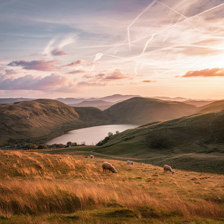 Sunset over the countryside in Cumbria, England, UK