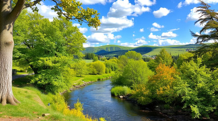 A Serene Symphony: Embracing the Enchanting Highland Green Hills and Rocky River Stream amidst the Bountiful Spring Foliage