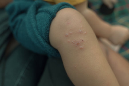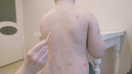 Child Experiencing Skin Condition Displaying Multiple Eruptions chickenpox Located on Their Back