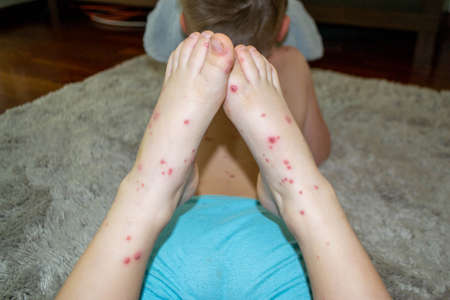 Male legs with many red spot and scar from insect bite.