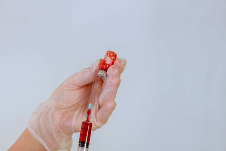 Nurse mixes the patient's blood with the medication for injection on a isolated white background