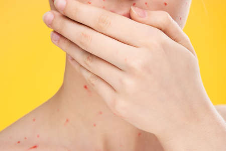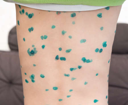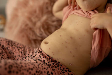 Papules on the skin of a patient with chickenpox close-up. Varicella Zoster virus.