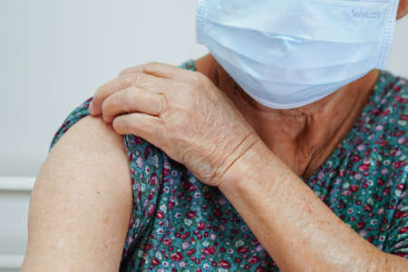 Asian elder senior woman getting vaccine for protect corona virus.