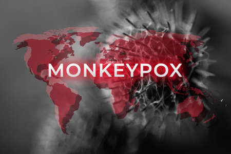 World map, monkeypox is standing on the textured background, outbreak of the MPXV virus, infectious disease spreading, pandemic