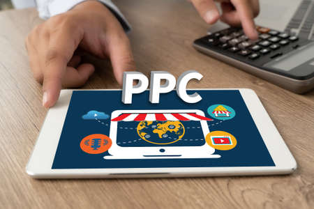 Concept Pay per click or ppc. Business acronym in holographic style..