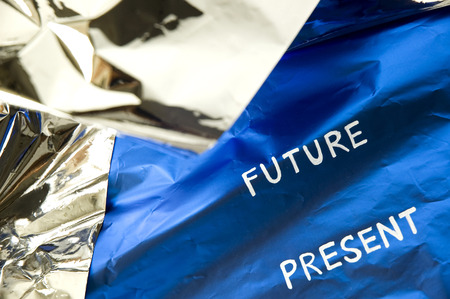 The image captures a close-up of crumpled metallic foil, reflecting a mesmerizing blend of blue and orange light. The interplay of colors and textures creates a dynamic, almost otherworldly atmosphere, perfect for evoking feelings of excitement and creativity.